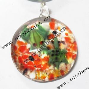 Lampwork Glass Pendant,Rectangular, 40x52x7mm, Hole=1mm, Sold by PC