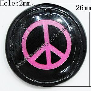 Resin Pendants, Flat Round 30mm Hole:2mm, Sold by Bag
