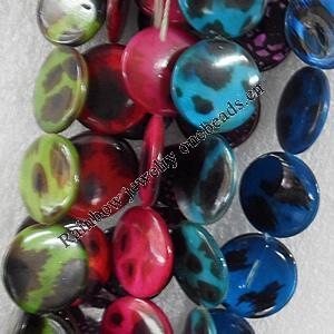 Shell Beads, Flat Round, Mix Colour, 30mm, Hole:Approx 1mm, Length:16-inch, Sold by Group