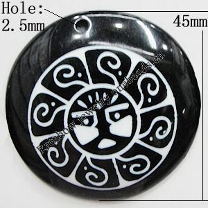 Resin Pendants, Flat Round 30mm Hole:2mm, Sold by Bag