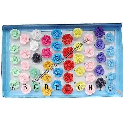 Iron Ring with Fimo Flower, 32mm, Mix colour & Mix style, Ring:18mm inner diameter, Sold by Box