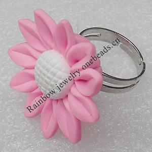 Iron Ring with Fimo Flower, 20-25mm, Mix Colour & Mix Style, Ring:18mm inner diameter, Sold by Box