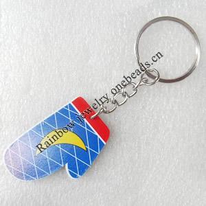 Key Chain, Iron Ring with Wood Charm, Mix Color, Charm width:47mm, Length Approx: 11cm, Sold by PC