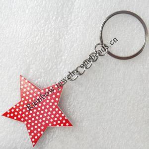 Key Chain, Iron Ring with Wood Charm, Mix Style, Charm width:37mm, Length Approx: 12.5cm, Sold by PC