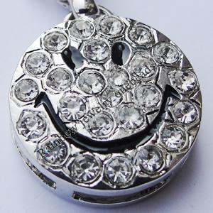 Zinc Alloy Charm/Pendant with Crystal, Flower 32x40mm, Sold by PC