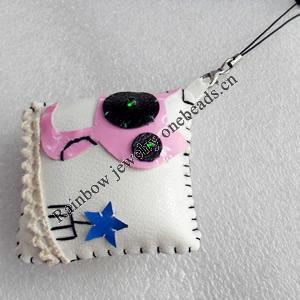 Mobile Decoration, PU Leather, Chain: about 60mm long, Pendant: about 35mm wide, Sold by PC