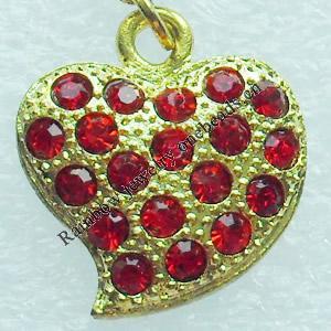 Zinc Alloy Charm/Pendant with Crystal, Heart 45x33mm, Sold by PC