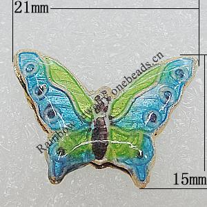 Cloisonne Beads, Butterfly, 27x17x4mm, Hole:Approx 1.5mm, Sold by PC