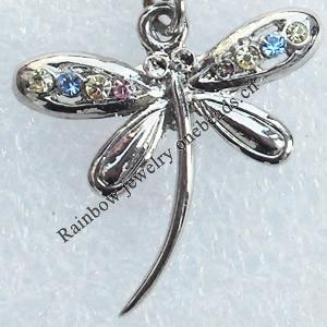 Zinc Alloy Charm/Pendant with Crystal, Nickel-free & Lead-free, A Grade 30x11mm, Sold by PC