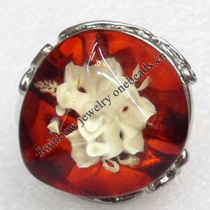 Imitate Amber Ring with metal alloy set, Head size:32x38mm, Sold by Dozen