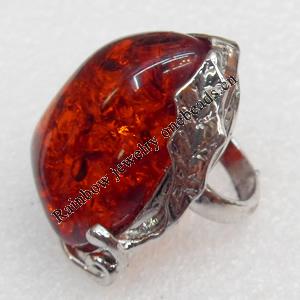 Imitate Amber Ring with metal alloy set, Head size:20x30mm, Sold by Dozen