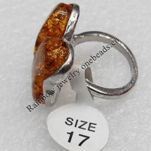 Imitate Amber Ring with metal alloy set, Head size:22mm, Sold by Dozen