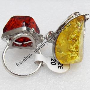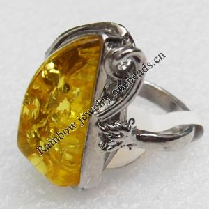 Imitate Amber Ring with metal alloy set, Head size:32x38mm, Sold by Dozen