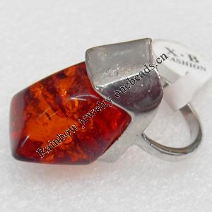 Imitate Amber Ring with metal alloy set, Head size:17x30mm, Sold by Dozen