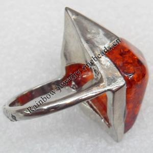 Imitate Amber Ring with metal alloy set, Head size:20x30mm, Sold by Dozen