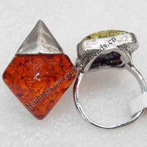 Imitate Amber Ring with metal alloy set, Head size:22mm, Sold by Dozen