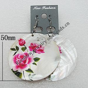 Shell Earring, Flat Round, 50x68mm, Sold by Dozen