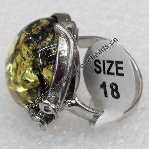 Imitate Amber Ring with metal alloy set, Head size:25x20mm, Sold by Dozen