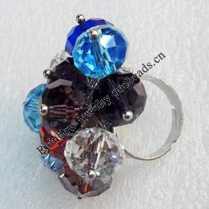 Iron Ring with Crystal Beads, Mix colour, Flower:about 28mm, Ring: 18mm inner diameter, 4.5-7mm wide, Sold by Box