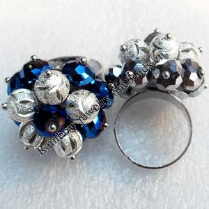 Iron Ring with Crystal Beads, Mix colour, Flower:about 32mm, Ring: 18mm inner diameter, 4.5-7mm wide, Sold by Box