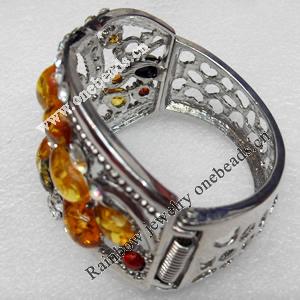 Bracelet, Imitate Amber Beads and Crystal Beads on a Zinc Alloy frame, width:45mm, Outer diameter:65mm, Sold by PC