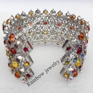 Bracelet, Imitate Amber Beads and Crystal Beads on a Zinc Alloy frame, width:37mm, Outer diameter:66mm, Sold by PC