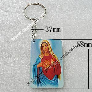 Key Chain, Iron Ring with Wood Charm, Rectangle 58x37mm, Sold by PC