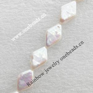Natural Fresh Water Pearl Beads, Diamond, White, Beads: about 13mm in diameter, Hole: 1mm, Sold per 14-inch Strand