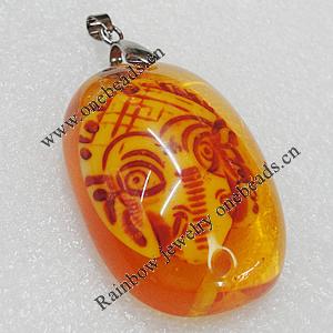 Imitate Amber Pendant With Metal Alloy Set, 46x19x8mm Hole:8x4.5mm, Sold by Bag