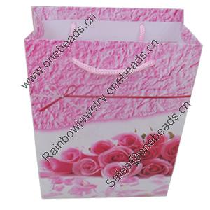 Gift Shopping Bag, Material:Paper, Size: about 30cm wide, 27cm high, 12cm bottom wide, Sold by Box