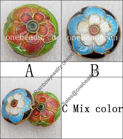 Cloisonne Beads, Flat Round, 10x6mm, Hole:Approx 1.5mm, Sold by PC