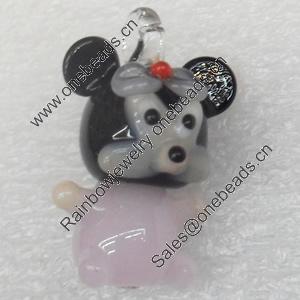 Handmade Lampwork Pendant, Pig, 17x30mm, Hole:Approx 3mm, Sold by PC