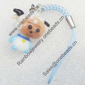 Mobile Decoration, Zinc Alloy Pendant, Pendant: about 13mm wide, Rope: about 6cm, Sold by Pair