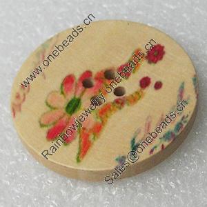 Wooden Button, Flat Round, 30mm, Hole:Approx 2mm, Sold by PC