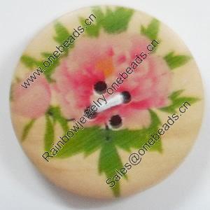 Wooden Button, Flat Round, 25mm, Hole:Approx 2mm, Sold by PC