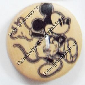 Wooden Button, Flat Round, 30mm, Hole:Approx 2mm, Sold by PC