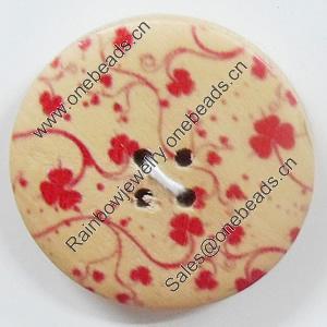 Wooden Button, Flat Round, 25mm, Hole:Approx 2mm, Sold by PC