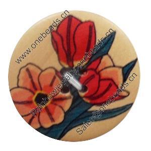 Wooden Button, Flat Round, 30mm, Hole:Approx 2mm, Sold by PC