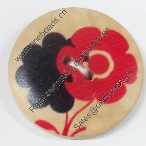 Wooden Button, Flat Round, 25mm, Hole:Approx 2mm, Sold by PC
