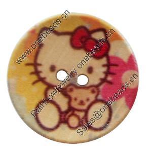 Wooden Button, Flat Round, 30mm, Hole:Approx 2mm, Sold by PC