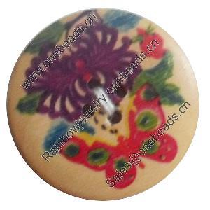 Wooden Button, Flat Round, 30mm, Hole:Approx 2mm, Sold by PC