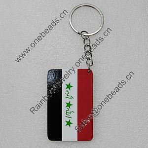 Key Chain, Iron Ring with Wood Charm, Rectangle 58x37mm, Sold by PC