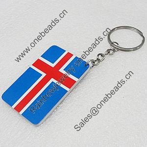 Key Chain, Iron Ring with Wood Charm, Rectangle 58x37mm, Sold by PC
