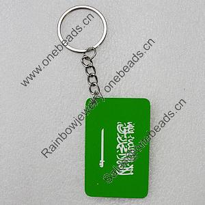Key Chain, Iron Ring with Wood Charm, Rectangle 58x37mm, Sold by PC