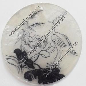 Shell Pendant, Flat Round, 25mm, Hole:Approx 1mm, Sold by Bag