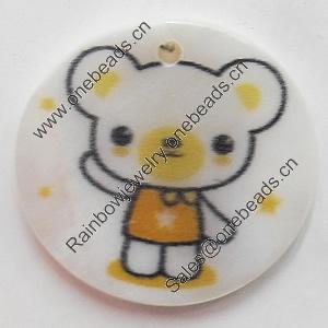Shell Pendant, Flat Round, 30mm, Hole:Approx 1mm, Sold by Bag