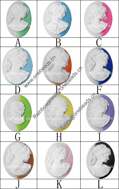 Cameos Resin Beads, A Grade, No-Hole Jewelry findings, 30x40mm, Sold by PC