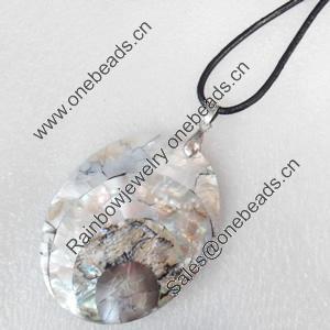 Shell Necklace, Rubber cord with Shell pendant, 40x69mm, Sold per 16-inch Strand