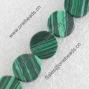 Malachite Beads,Flat Round, 14mm, Hole:Approx 1mm, Sold per 16-inch Strand