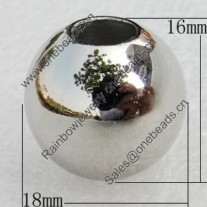 Jewelry findings, CCB plastic beads, imitated platinum plated Round 17x17mm hole=2mm Sold per bag
